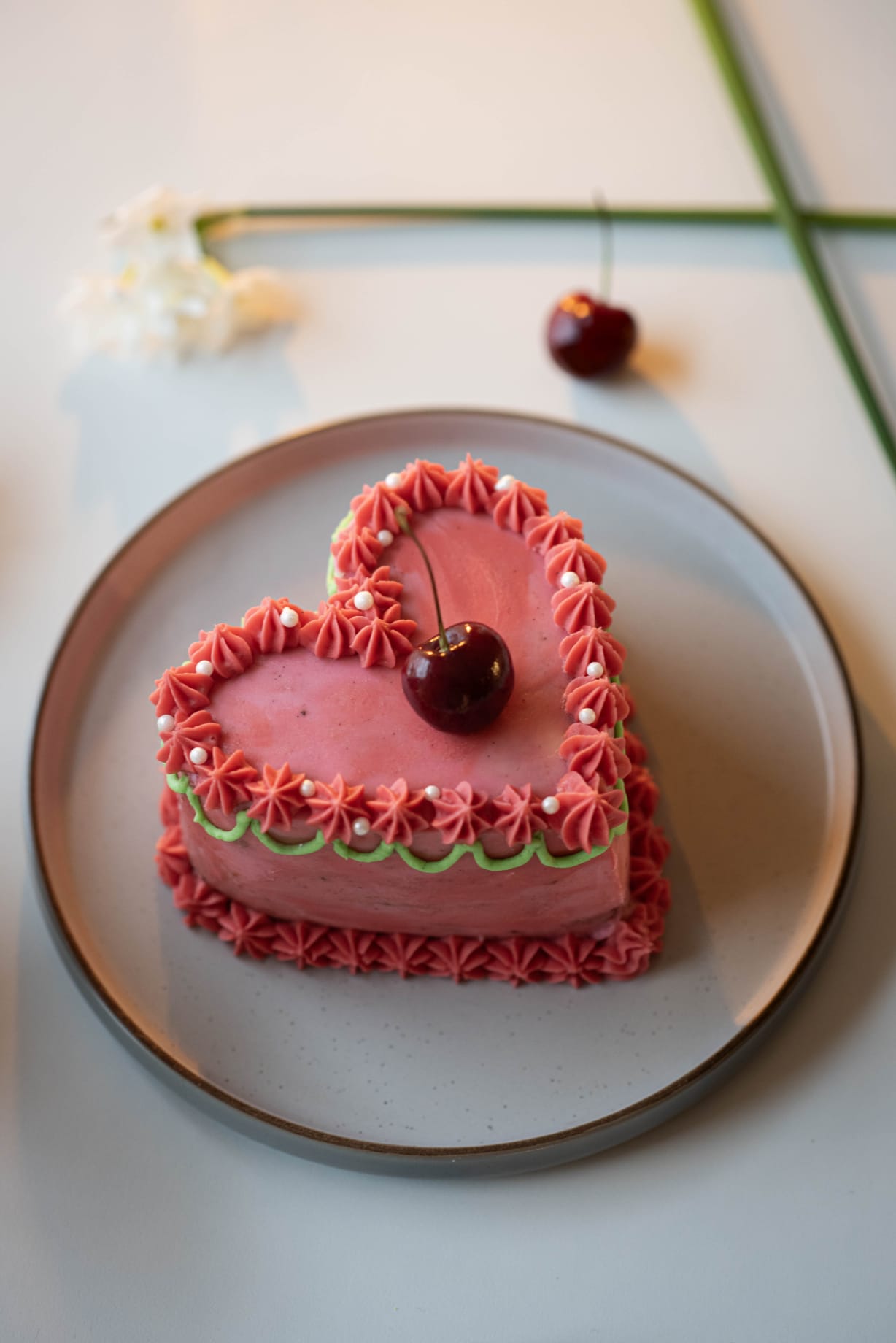 Vegan chocolate chip cookie cake with buttercream icing, for Holly and Jessie for Valentine's Day.